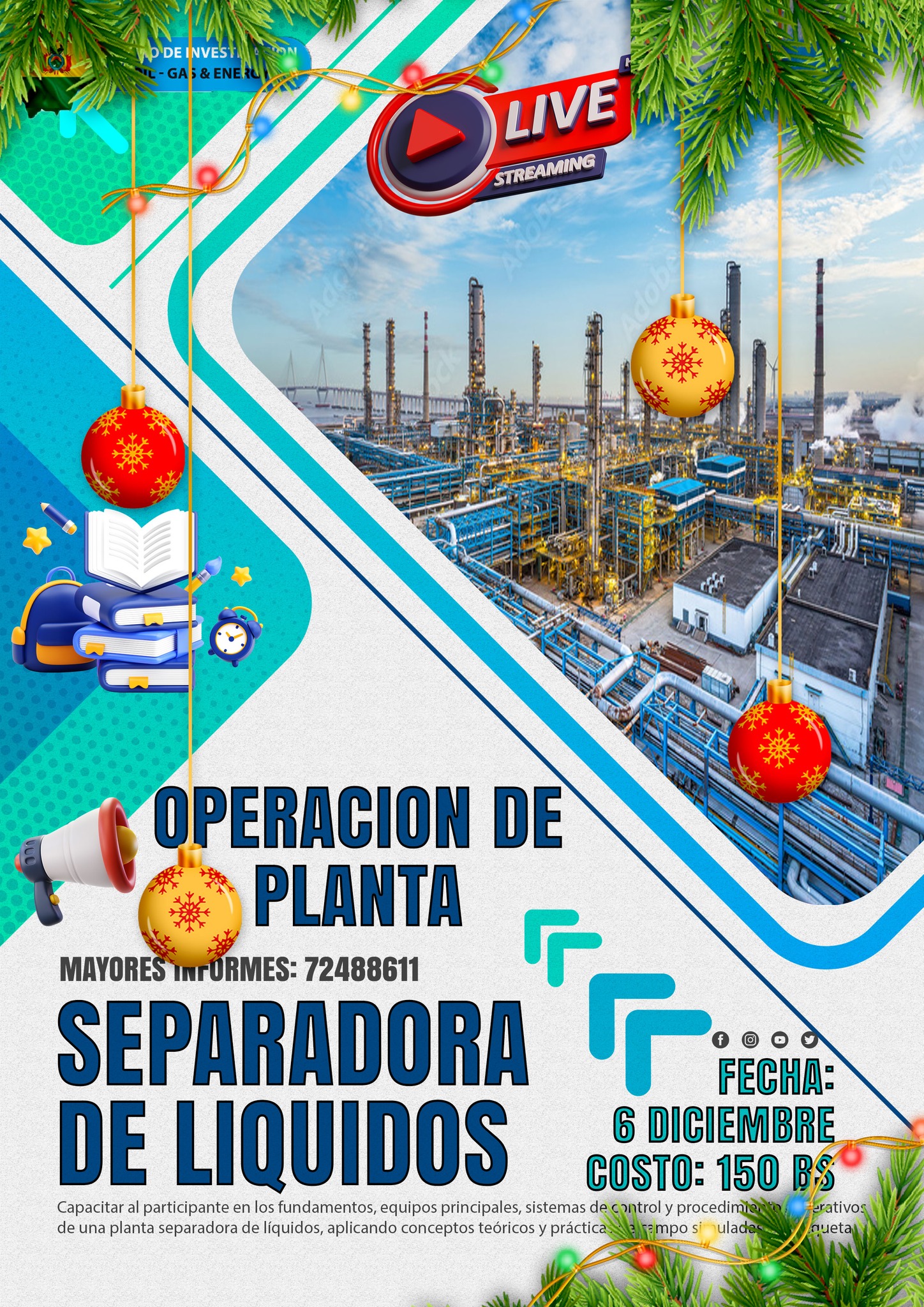 OBJETIVOS DEL CURSO: Aprender y fortalecer los conocimientos teóricos y prácticos sobre la Operación de Plantas "Separadora de Liquidos" según las normas vigentes dentro el área de diseño y operación considerando los distintos sistemas que están involucrados. Desde el proceso de filtrado y deshidratación, Recuperación de Metano, Rechazo de Etano y Recuperación de Propano é Isopentano y los procesos que intervienen dentro todo el ciclo de separación de liquidos a partir del Gas Natural.